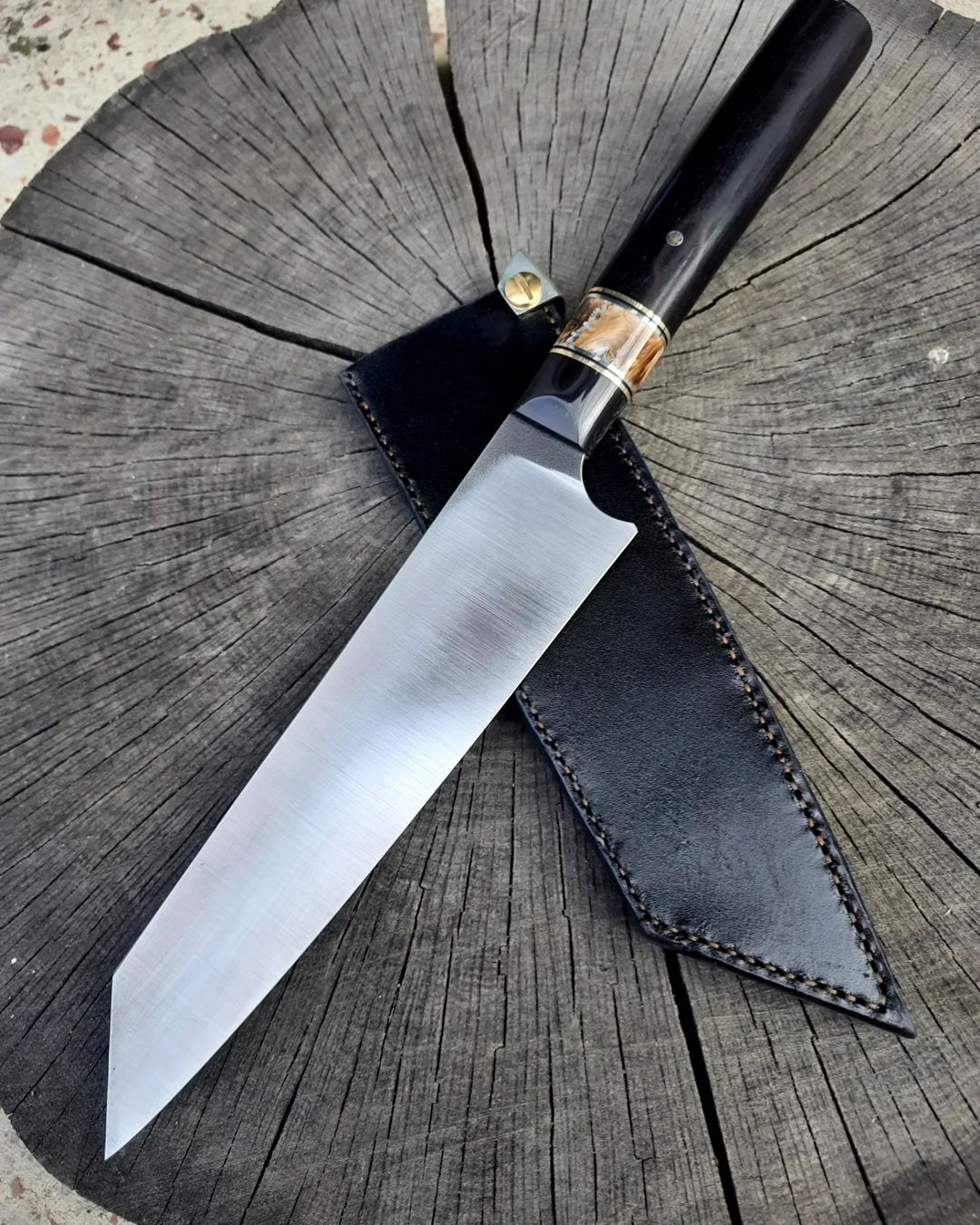 | Матеріал руків'я: | ріг буйвола, нейзільбер, латунь, g10, стабілізований зуб мамонта і граб, мозаїчний пін |