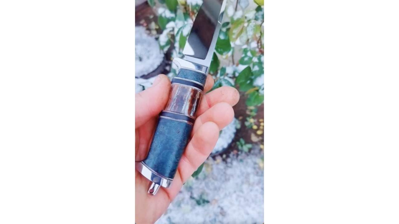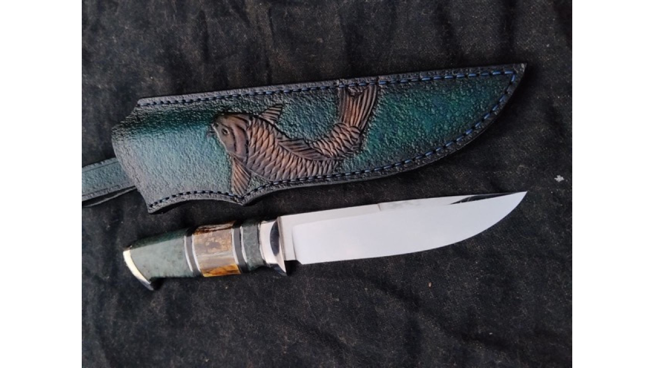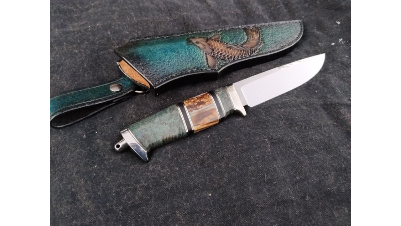Матеріал руків'я: Aisi 304.Больстер-Aisi304 нержавіюча сталь. Стабілізована карельська береза, африканський ебен, стабілізований зуб мамонта