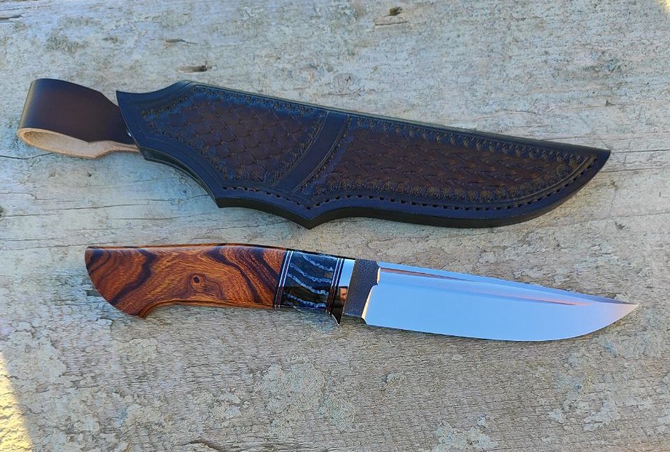 | Матеріал руків'я: | Нержавіюча сталь. Стаблізований бивень мамонта, айронвуд - арізонське залізне дерево (Ironwood), проставки g10, наскрізний монтаж на стяжку і епоксидну смолу |