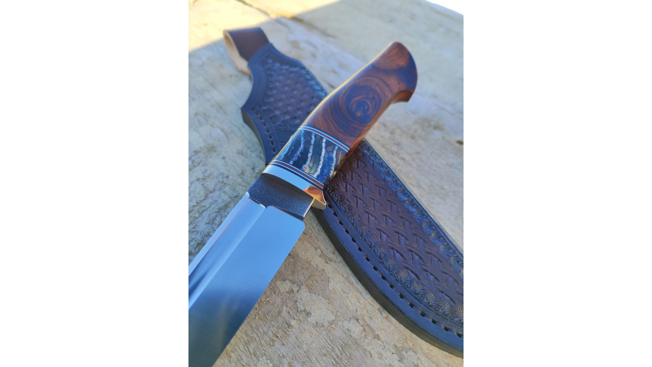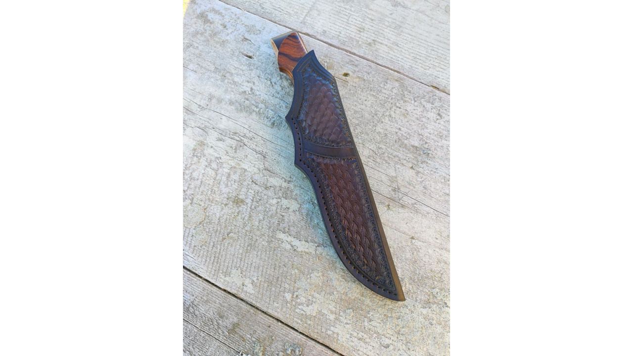 Піхви: Італійська натуральна теляча шкіра чепрак рослинного вичинки та дублення 4.0 мм, оброблена апретурою для захисту від води та просякнута захисними розчинами, прошита вручну вощеною ниткою. Ручне тиснення фактурита. Вільний підвіс та підвіс на пасок