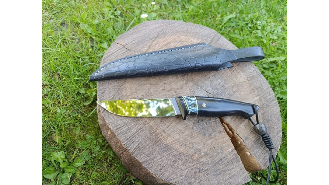 Піхви: Натуральна шкіра рослинного дублення 4.0 мм, оброблена аппретурою для захисту від води та просочена захисними розчинами, жировоскове просочення, прошита вощеною ниткою. Ручне тиснення та художнє оформлення фактури - ручна робота. Фініш Апретурою. Вільний підвіс