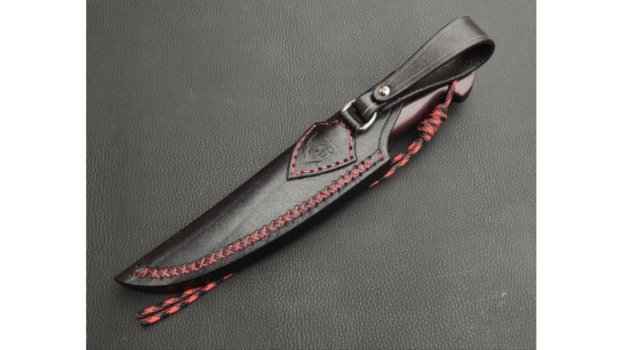 Піхви: Натуральна шкіра рослинного дублення, оброблена аппретурою для захисту від води та просочена захисними розчинами, жировоскове просочення, прошита вощеною ниткою. Ручне тиснення фактури. Вільна підвіска