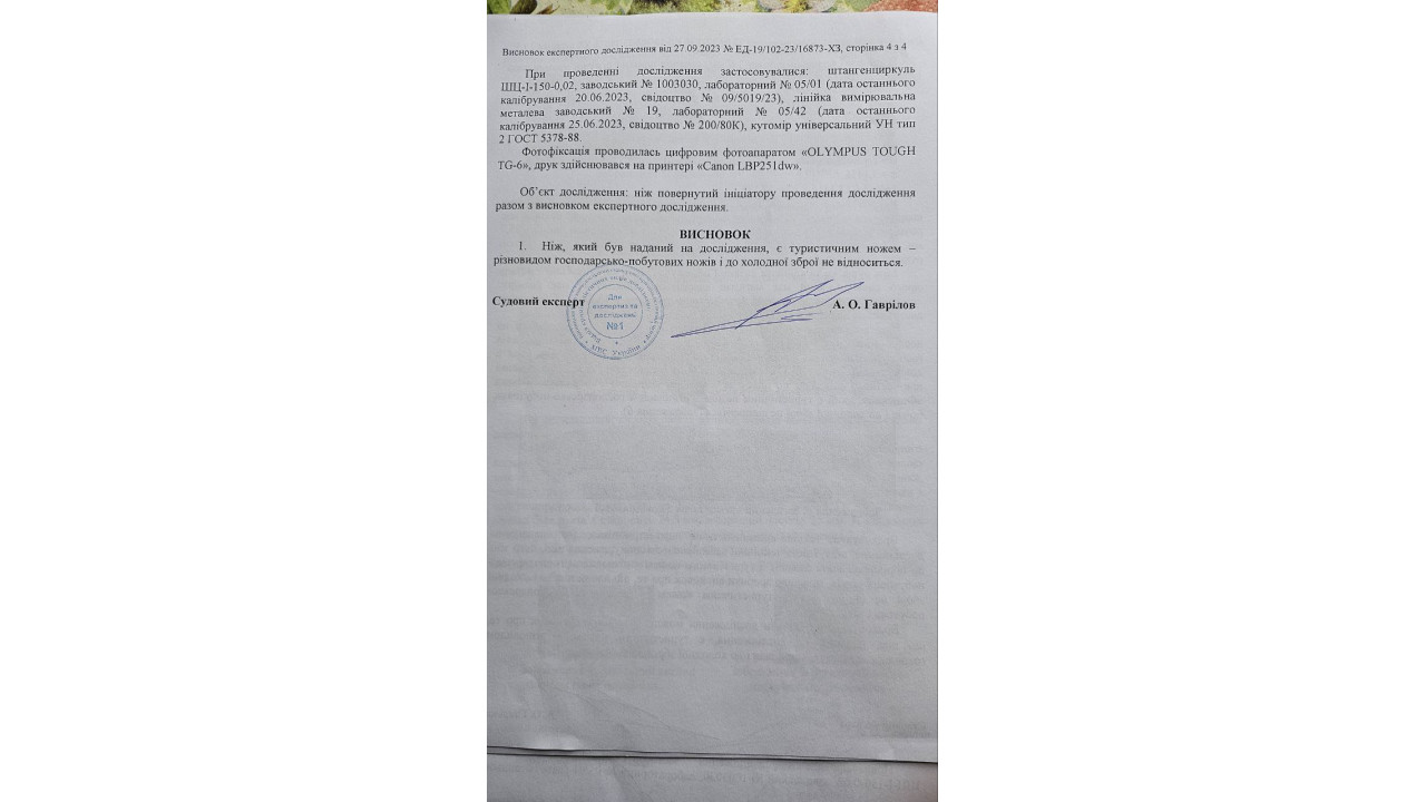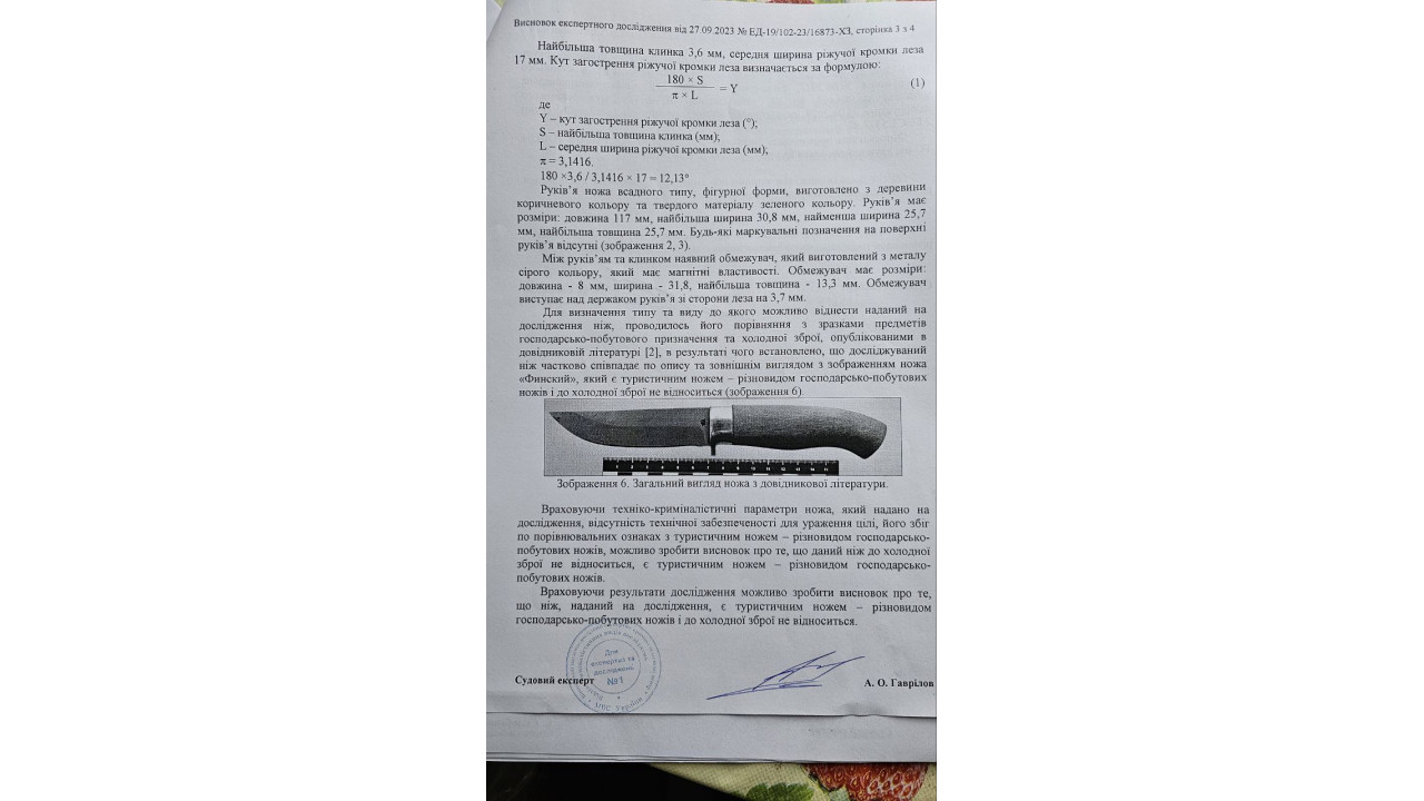 Ніж заточений, не є холодною зброєю.
