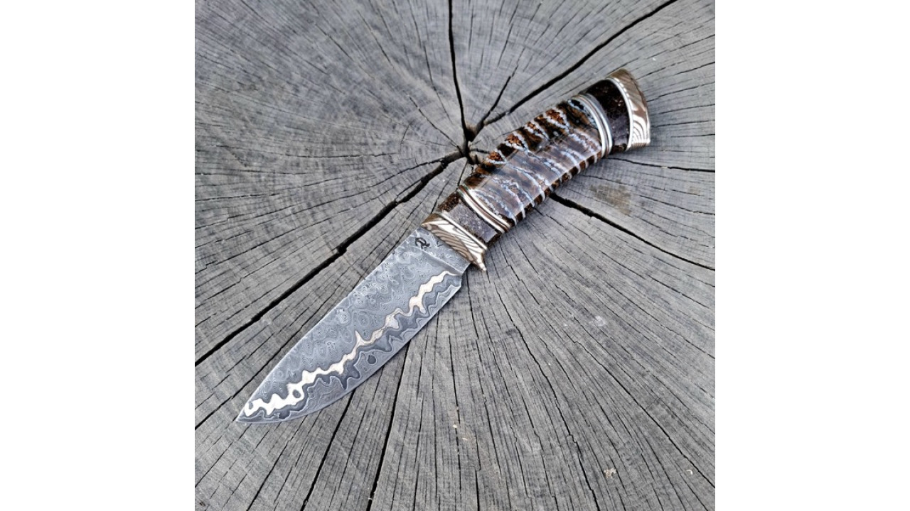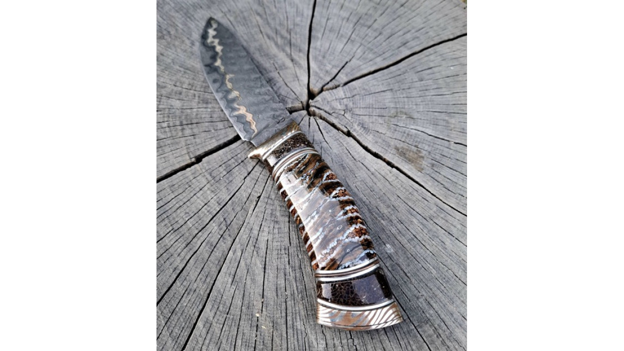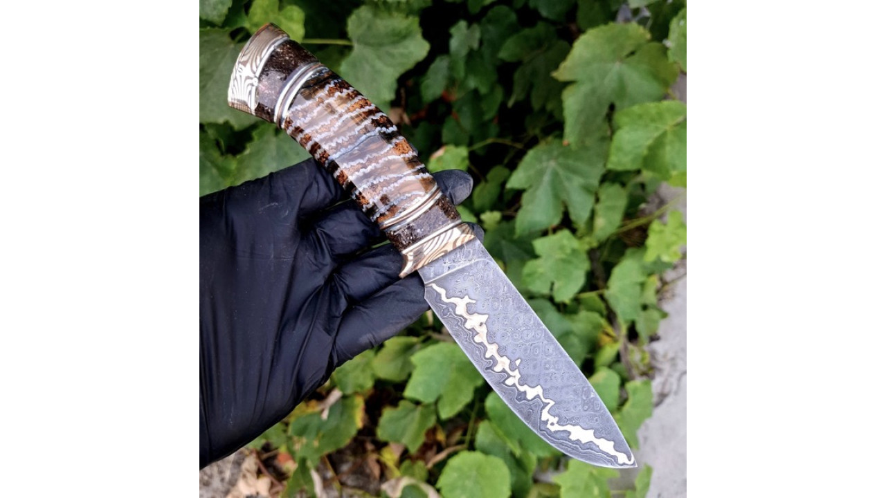 Матеріал руків'я: Макуме-гане, нейзельбер, мідь, стабілізована кістка кита, стабілізований зуб мамонта, мозаічний пін