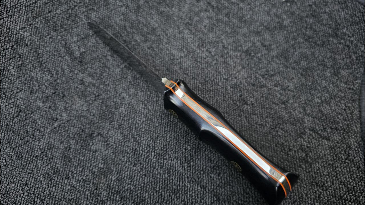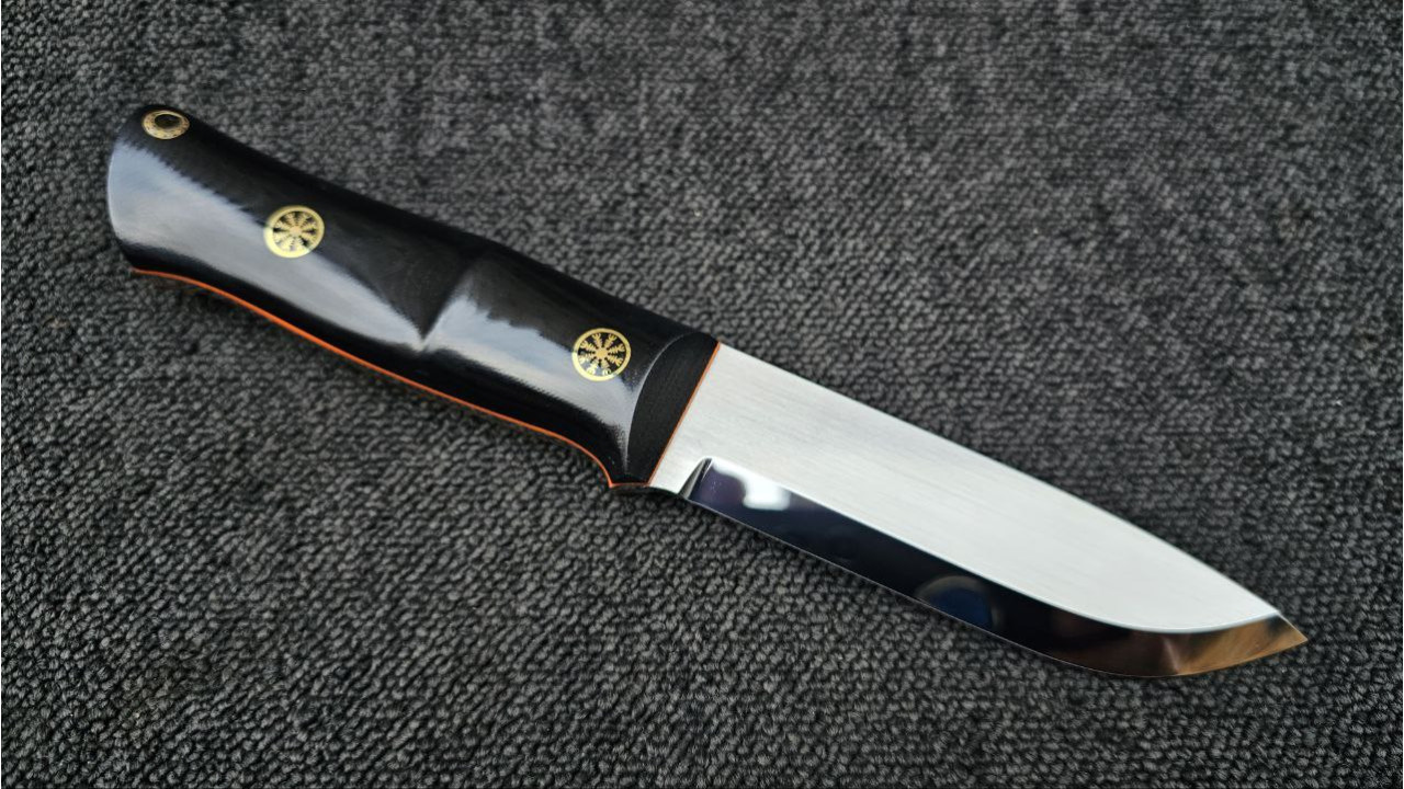 Кут заточення леза: Загострений на 30° (загальний кут). Це поширений кут для робочих ножів, що забезпечує хорошу гостроту та стійкість кромки до затуплення