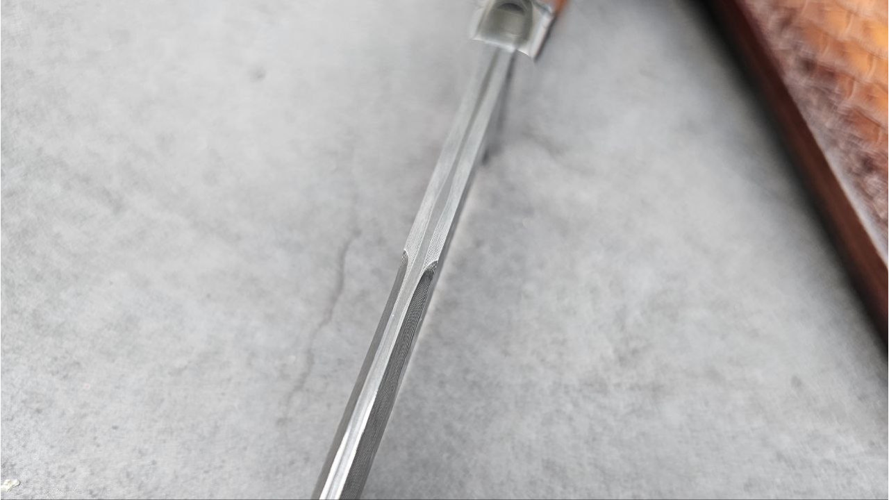 Твердість леза: 65-67 HRC, це дуже високий показник, що забезпечує відмінну зносостійкість ріжучої кромки та тривале збереження гостроти