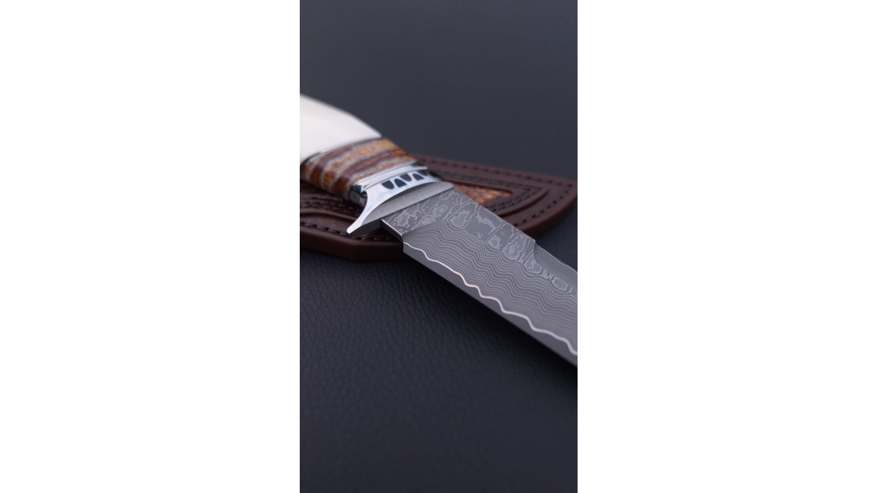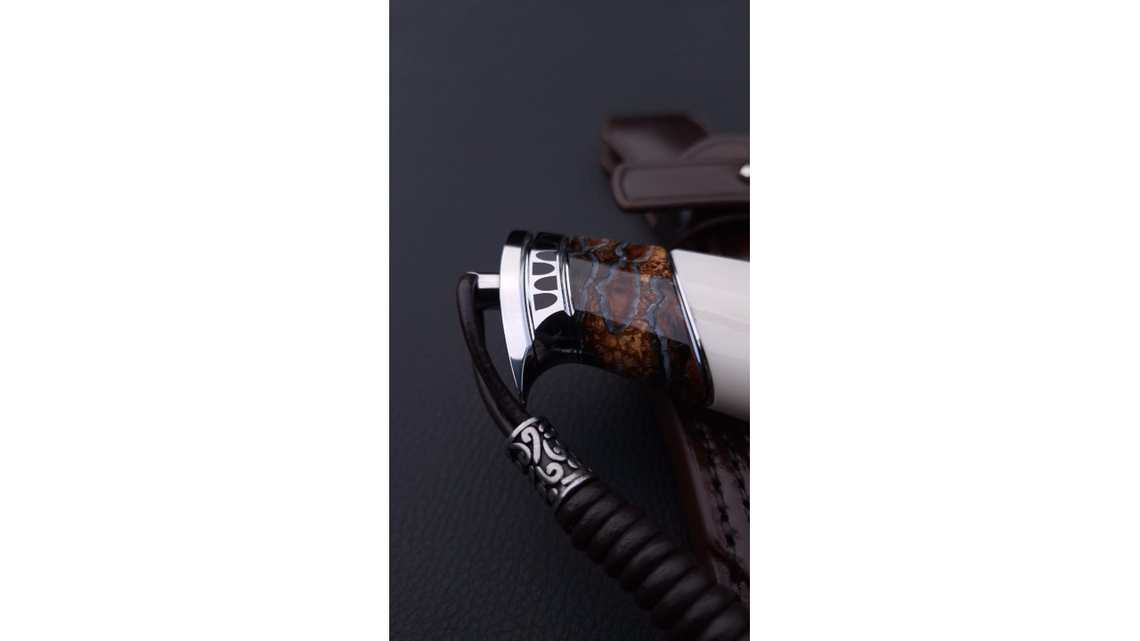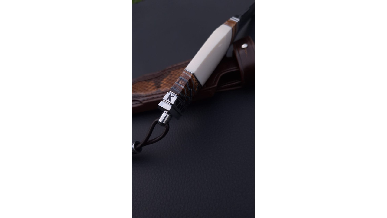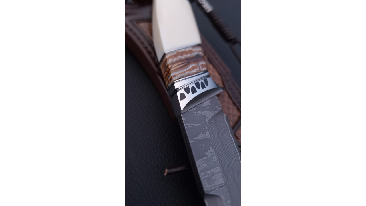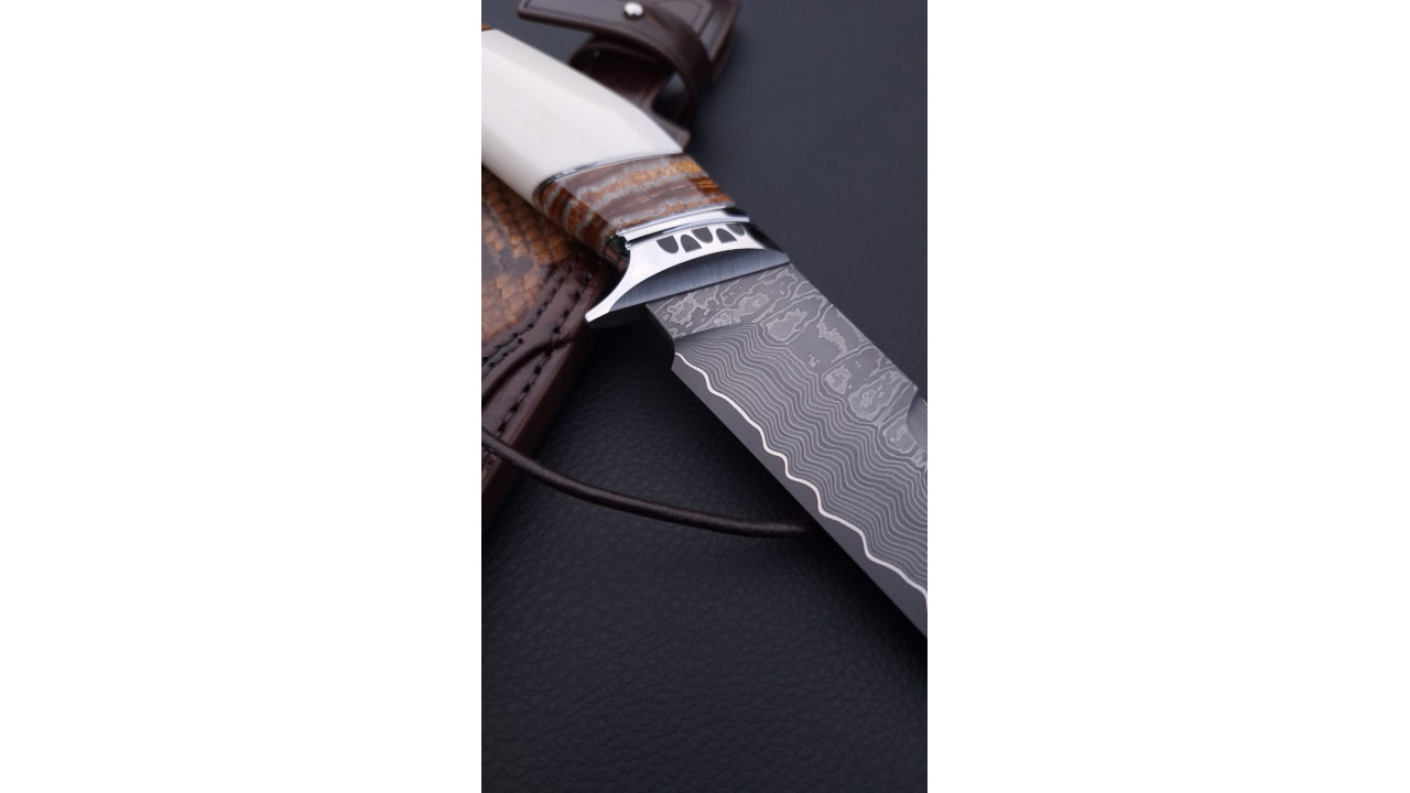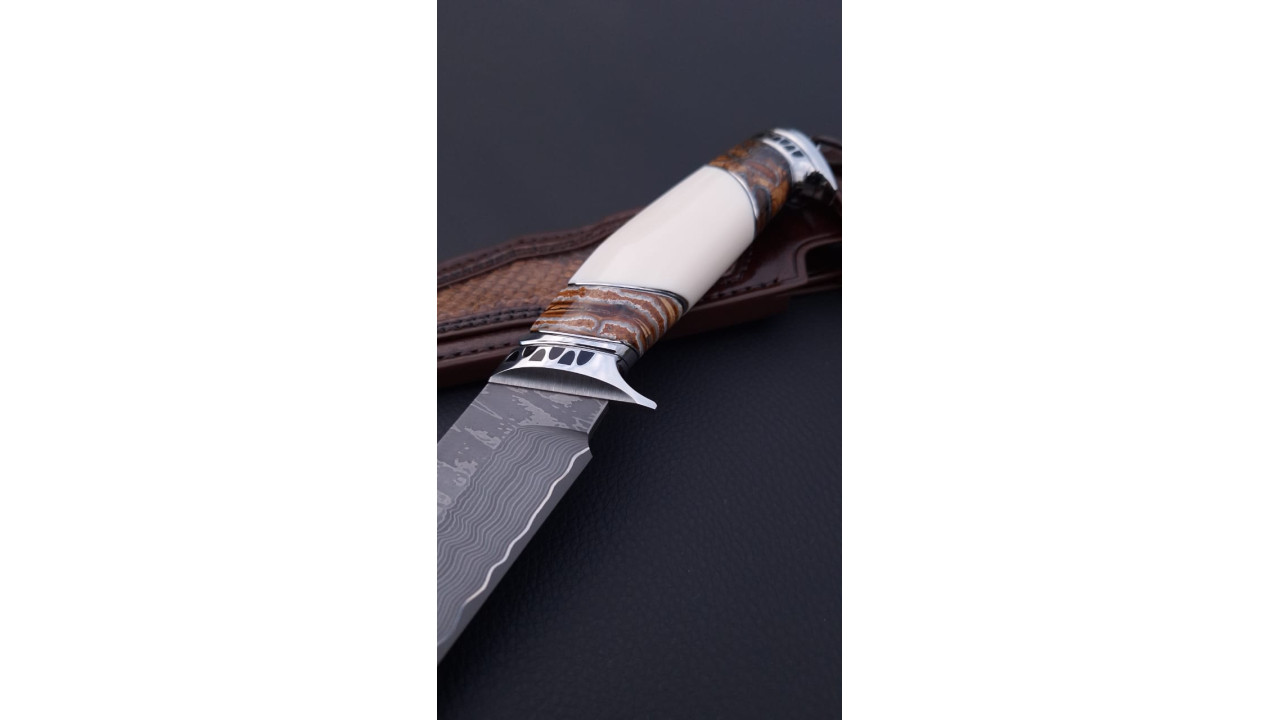 Матеріал руків'я: | Больстер комбінований з нержавійки. Радіусні вставки зуб мамонта, вставки бивня слонга |