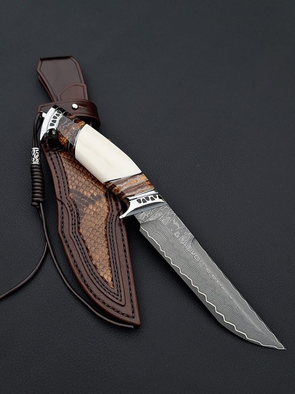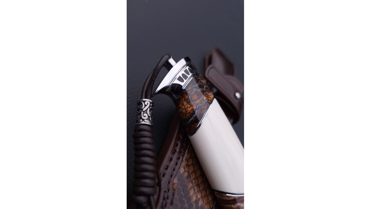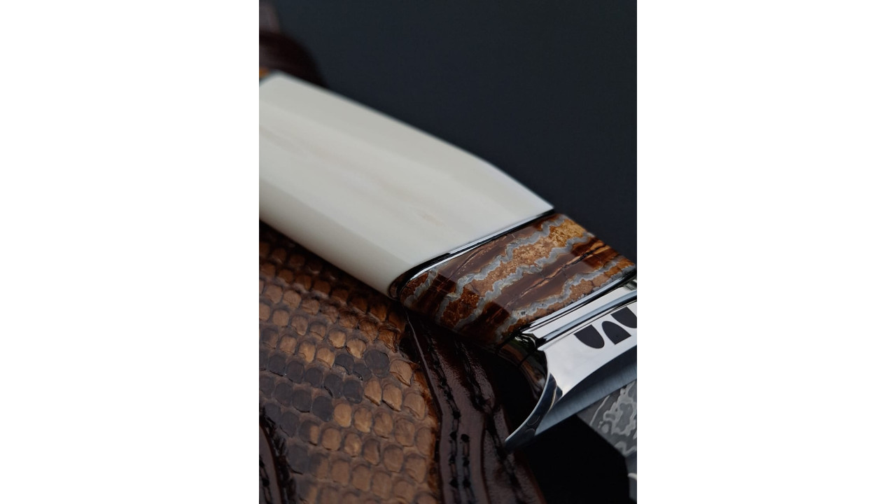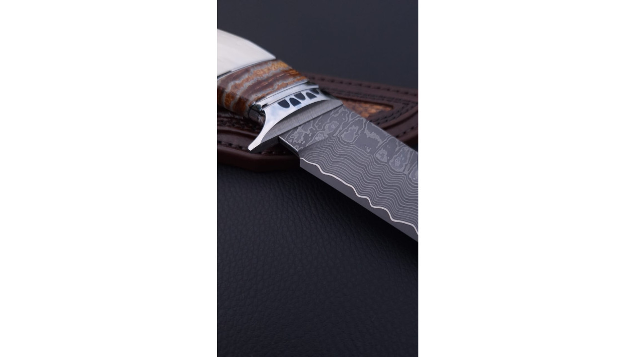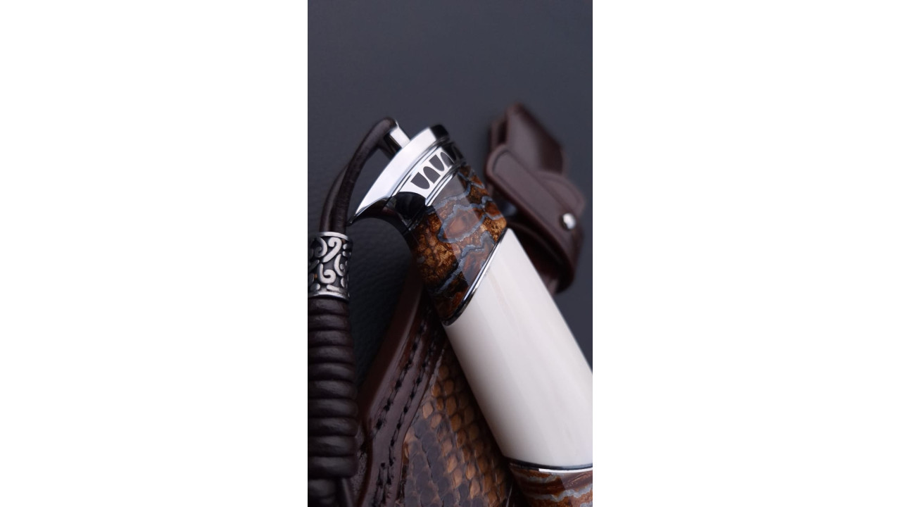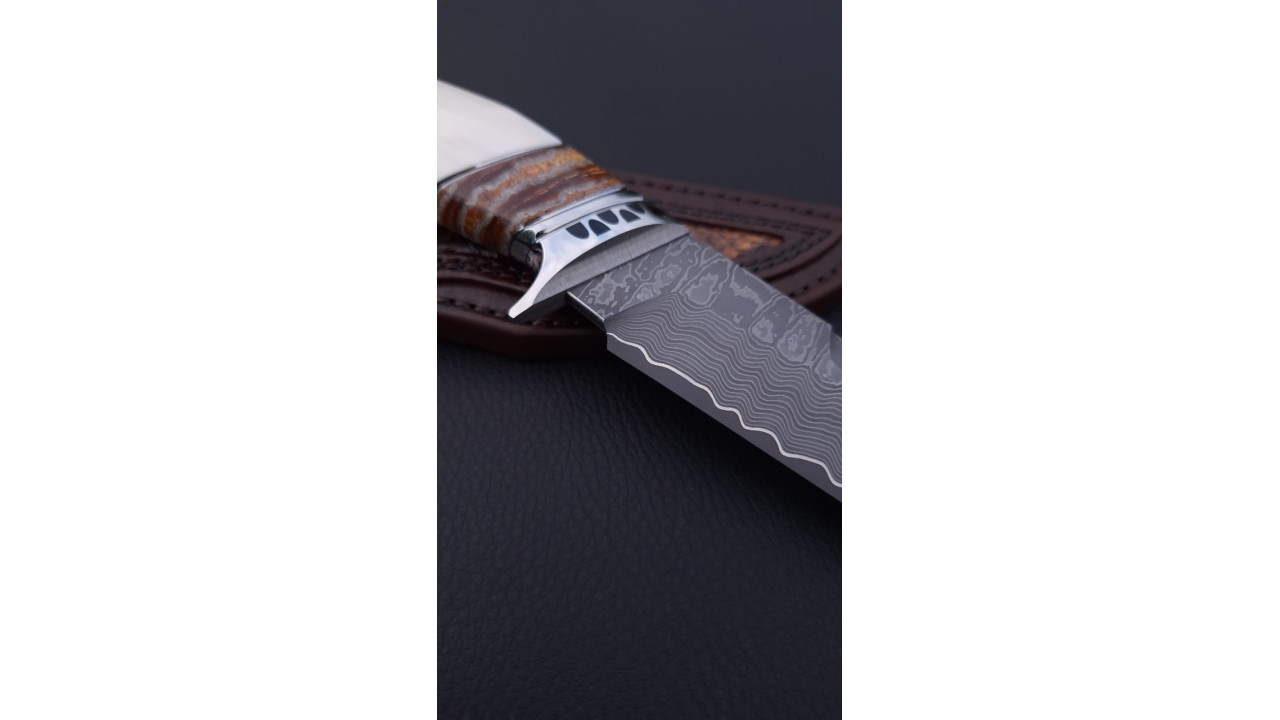 Матеріал руків'я: | Больстер комбінований з нержавійки. Радіусні вставки зуб мамонта, вставки бивня слонга |