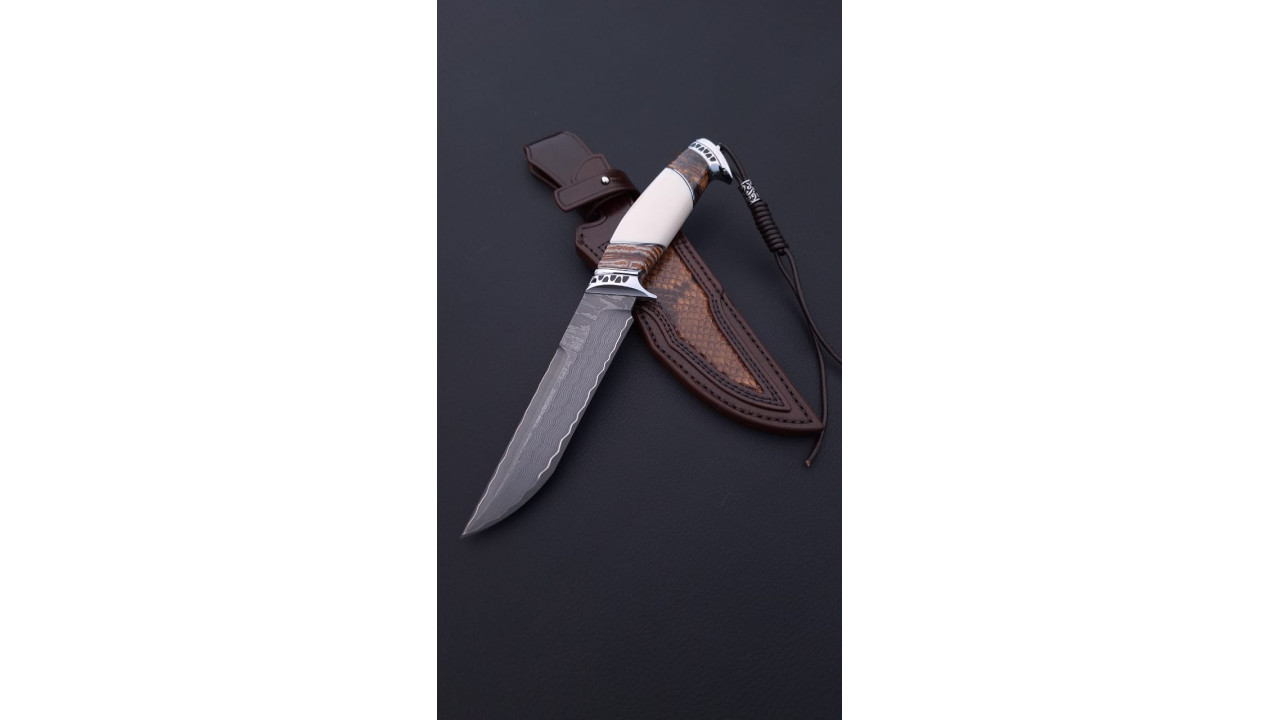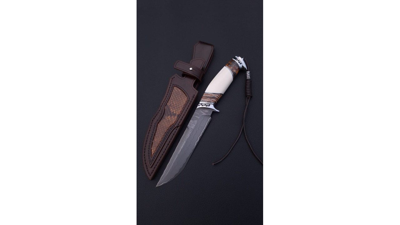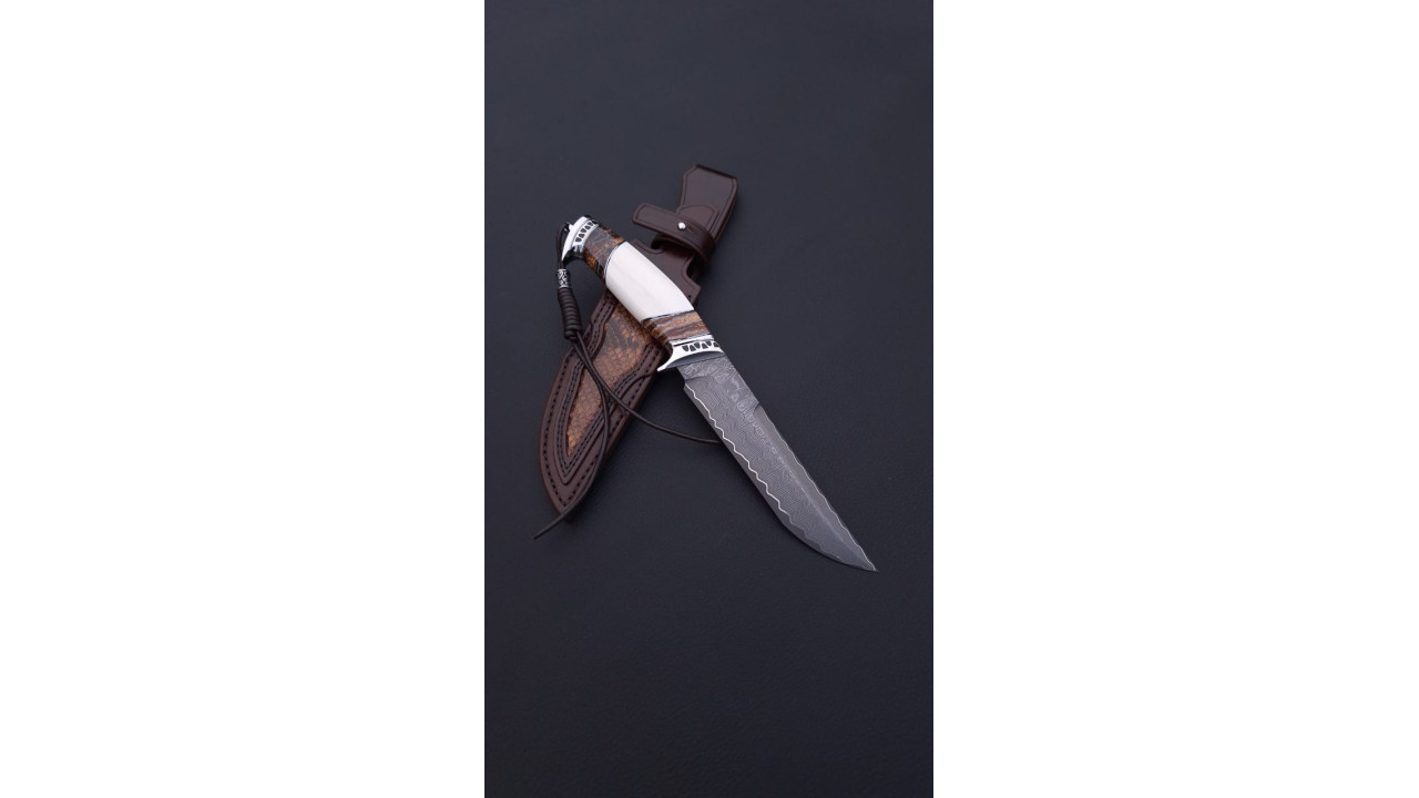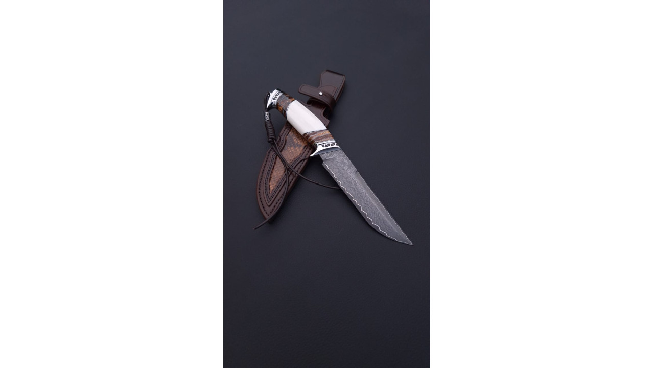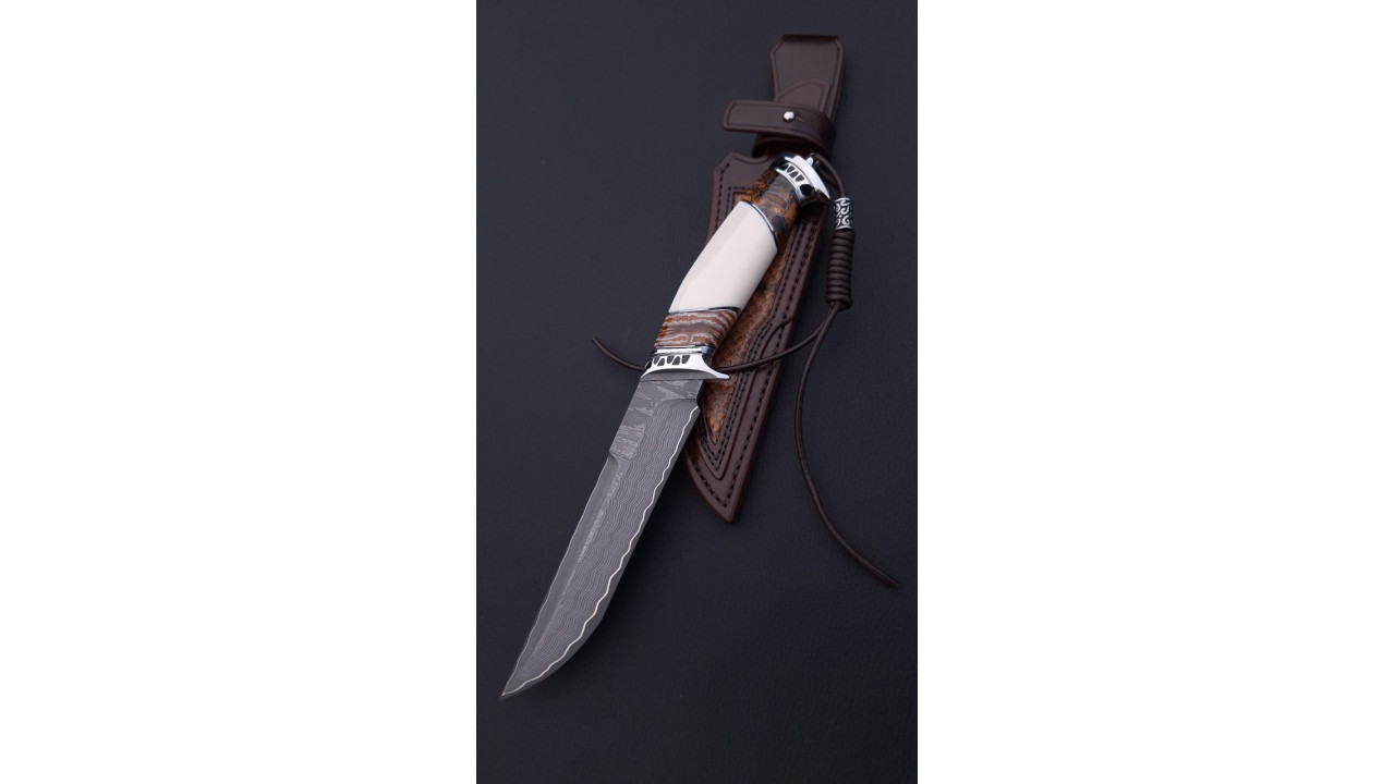 Зуб мамонта – виробний матеріал тваринного походження. Його винятковою особливістю є той факт, що його джерелом є вимерлі звірі – мамонти. Палеонтологами було встановлено, що вони жили на Землі близько 10 тисячоліть тому, і їхня кількість була дуже велика. Зуби у мамонтів були не постійними і змінювалися приблизно чотири рази протягом життя. Зуби, що випали, які сучасні вчені знаходять під час розкопок, і стають основою для декоративних елементів, серед яких є і рукояті ножів.