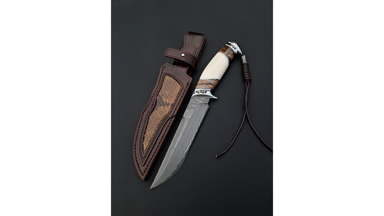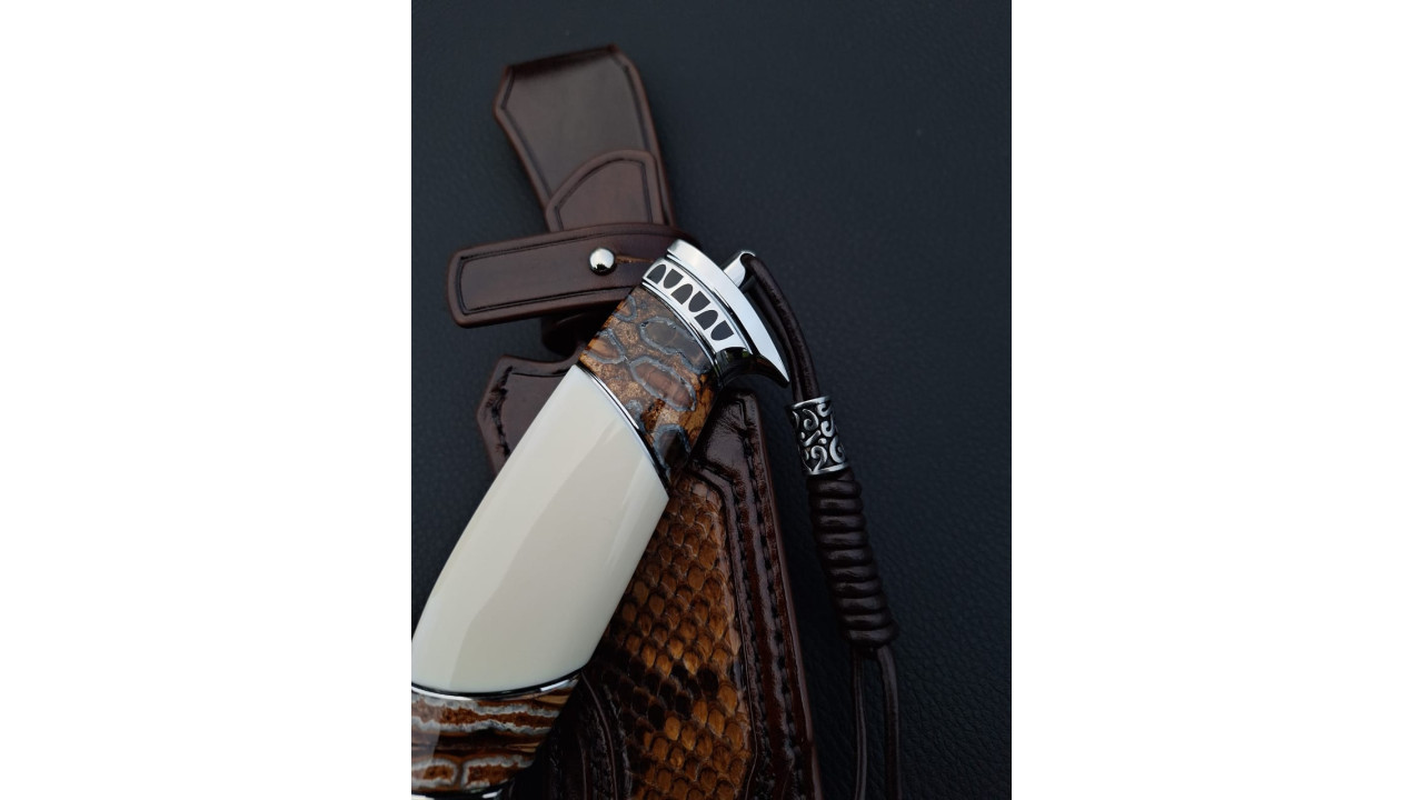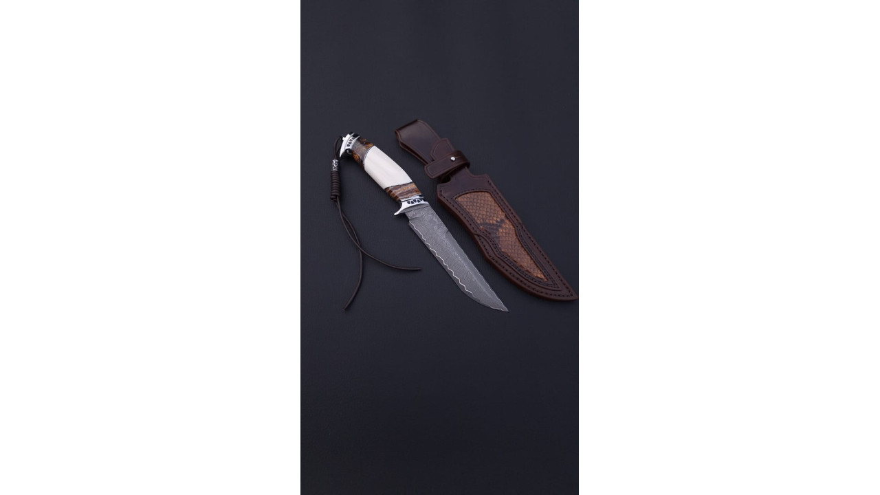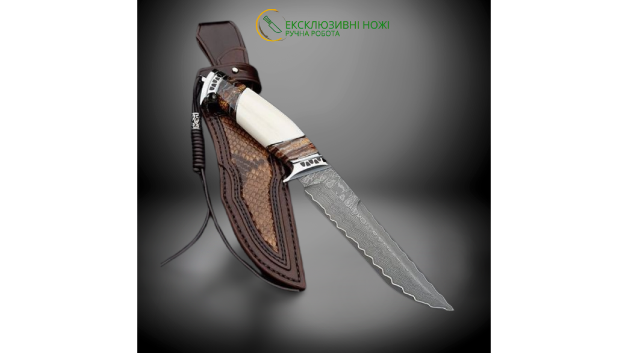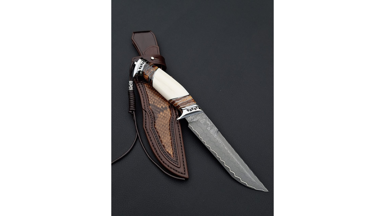 Зуб мамонта – виробний матеріал тваринного походження. Його винятковою особливістю є той факт, що його джерелом є вимерлі звірі – мамонти. Палеонтологами було встановлено, що вони жили на Землі близько 10 тисячоліть тому, і їхня кількість була дуже велика. Зуби у мамонтів були не постійними і змінювалися приблизно чотири рази протягом життя. Зуби, що випали, які сучасні вчені знаходять під час розкопок, і стають основою для декоративних елементів, серед яких є і рукояті ножів.