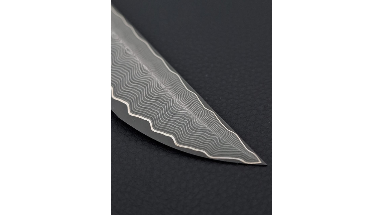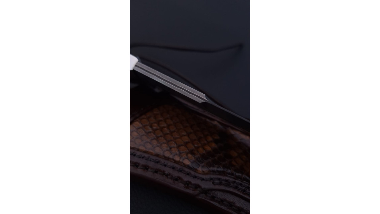 Матеріал леза | Клинок - сталь марки CPM REX 121 інструментальний порошковий швидкорізальний сплав американської компанії Crucible Industries LLC в ламінаті (техніка San-May - ручне кування клинка) - в обкладці Elmax |