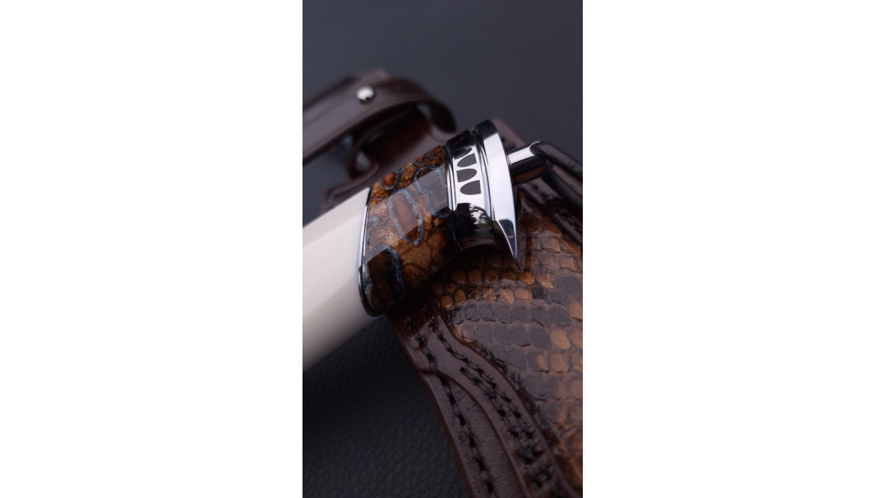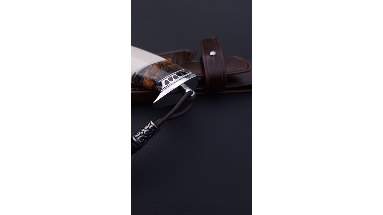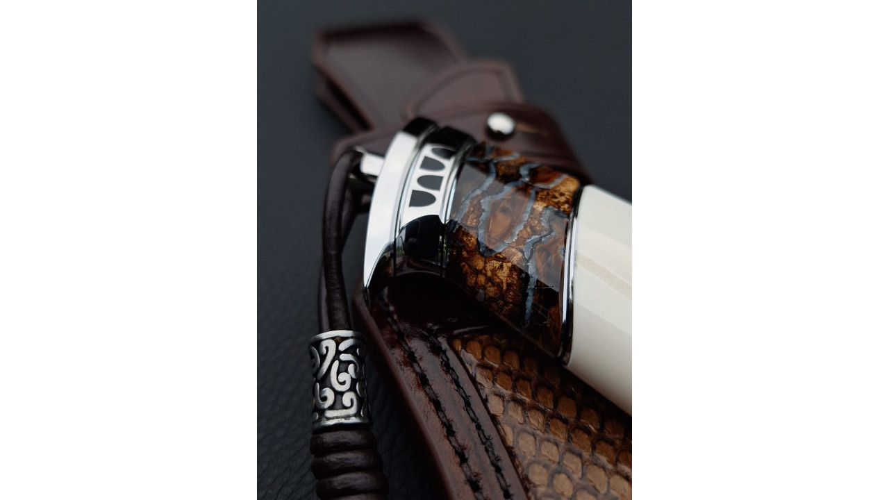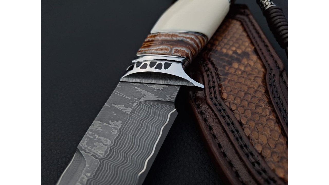 Через тривале перебування в грунті матеріал набув дуже нестабільної структури – емаль отримала кам'яну твердість, а дентин, навпаки, став пухким. Але сучасні технології стабілізації матеріалів допомогли перетворити зуби мамонта на чудову основу для створення розкішних рукояток ножів. Полімерний композит забезпечує виробам стійкість до корозії та вологи, а природна основа дає унікальну текстуру та вигадливий візерунок.