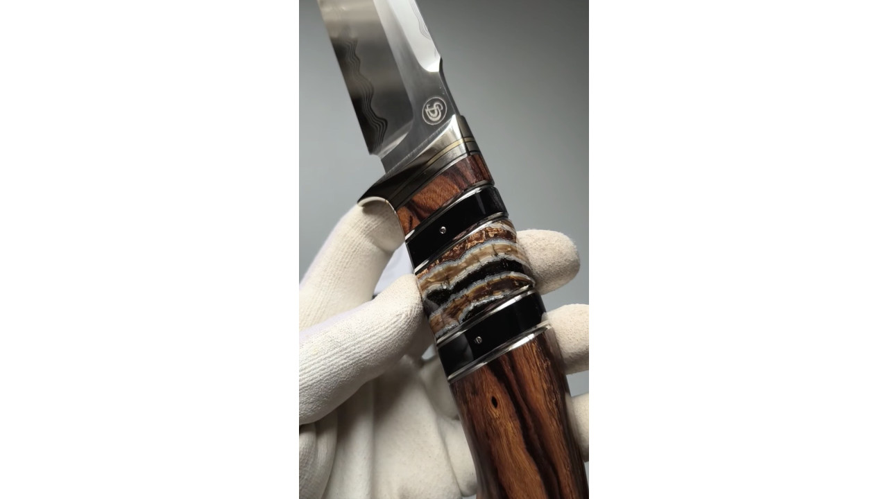 Через тривале перебування в грунті матеріал набув дуже нестабільної структури – емаль отримала кам'яну твердість, а дентин, навпаки, став пухким. Але сучасні технології стабілізації матеріалів допомогли перетворити зуби мамонта на чудову основу для створення розкішних рукояток ножів. Полімерний композит забезпечує виробам стійкість до корозії та вологи, а природна основа дає унікальну текстуру та вигадливий візерунок.