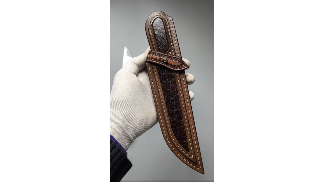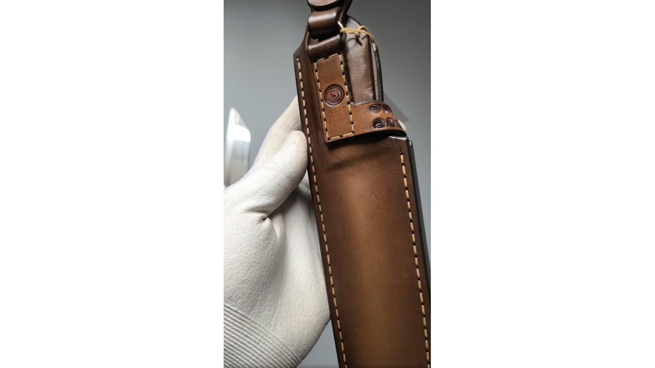 Піхви: Натуральна шкіра (Італія) рослинного дублення 4,0 мм, оброблена аппретурою для захисту від води та просочена захисними розчинами, жировоскове просочення, прошита вощеною ниткою. Ручне тиснення фактури. Вільний підвіс