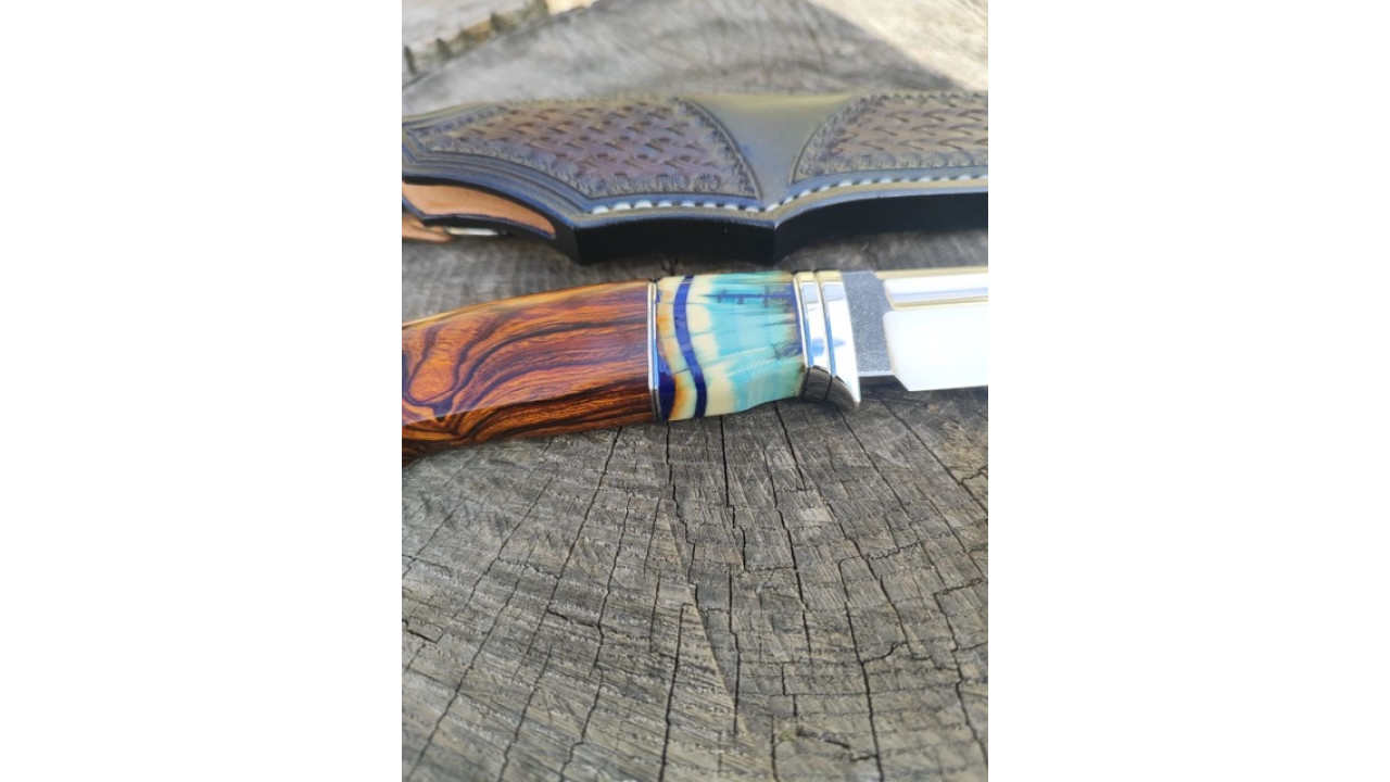 | Матеріал руків'я: | Нержавіюча сталь. Стаблізований бивень мамонта, айронвуд - арізонське залізне дерево (Ironwood), проставки g10, наскрізний монтаж на стяжку і епоксидну смолу |