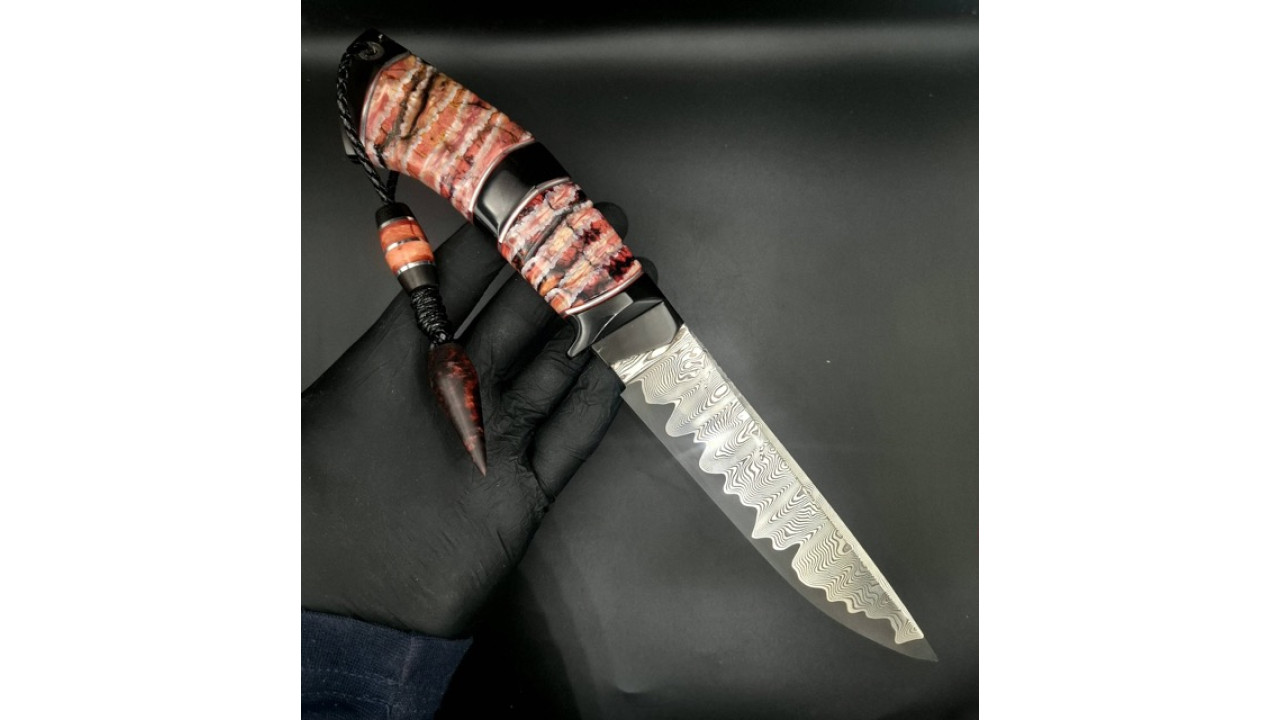 Через тривале перебування в грунті матеріал набув дуже нестабільної структури – емаль отримала кам'яну твердість, а дентин, навпаки, став пухким. Але сучасні технології стабілізації матеріалів допомогли перетворити зуби мамонта на чудову основу для створення розкішних рукояток ножів. Полімерний композит забезпечує виробам стійкість до корозії та вологи, а природна основа дає унікальну текстуру та вигадливий візерунок.