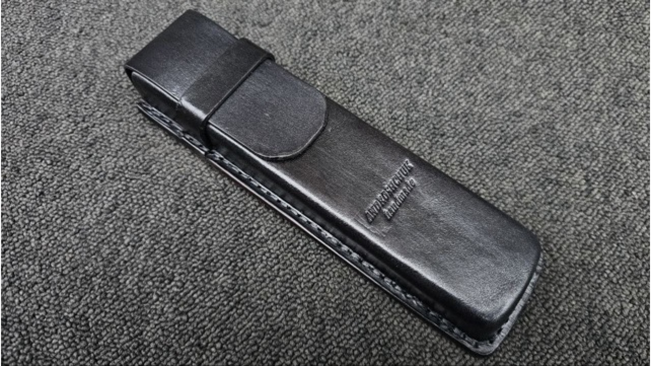 Піхви: Італійська натуральна теляча шкіра чепрак рослинного вичинки та дублення 4.0 мм, оброблена апретурою для захисту від води та просякнута захисними розчинами, прошита вручну вощеною ниткою. Ручне тиснення фактури