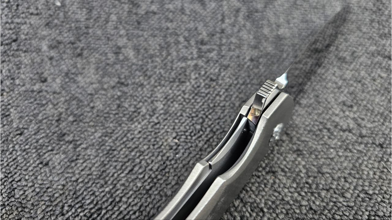 - Осьовий механізм: в осьовому керамічний підшипник, лайнер субфрейма із загартованої сталі N690, твердість 55 одиниць. Кулька детента також керамічна