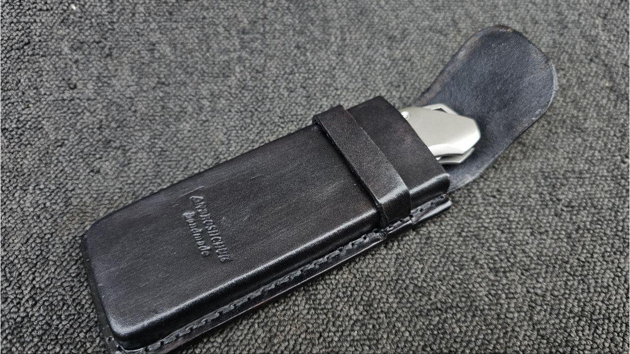 Піхви: Італійська натуральна теляча шкіра чепрак рослинного вичинки та дублення 4.0 мм, оброблена апретурою для захисту від води та просякнута захисними розчинами, прошита вручну вощеною ниткою. Ручне тиснення фактури