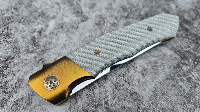 Матеріал руків'я: | Матеріал руків'я: Преміальне поєднання: Тимаскус (Timascus): Титановий дамаск — високодекоративний, легкий та стійкий до корозії матеріал. Карбон (Carbon Fiber): Легкий, міцний та сучасний композитний матеріал. Титан: Міцний, легкий та корозійностійкий метал, часто використовується для лайнерів та больстерів. Осьовий механізм: Керамічний підшипник, тип замка лайнер лок, в лайнері стоїть загартований сухар, в детенті також керамічна кулька. Гарантує надзвичайно плавне, швидке та надійне відкриття/закриття клинка. |