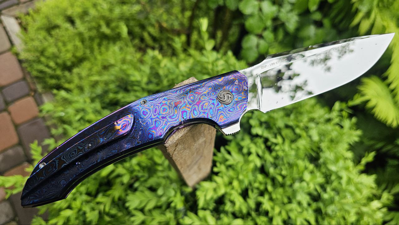 ТІМАСКУС ХИЖИЙ авторський складаний ніж ручної роботи GRYFON, сталь ZDP-189, 67 HRC , купити замовити в Україні
