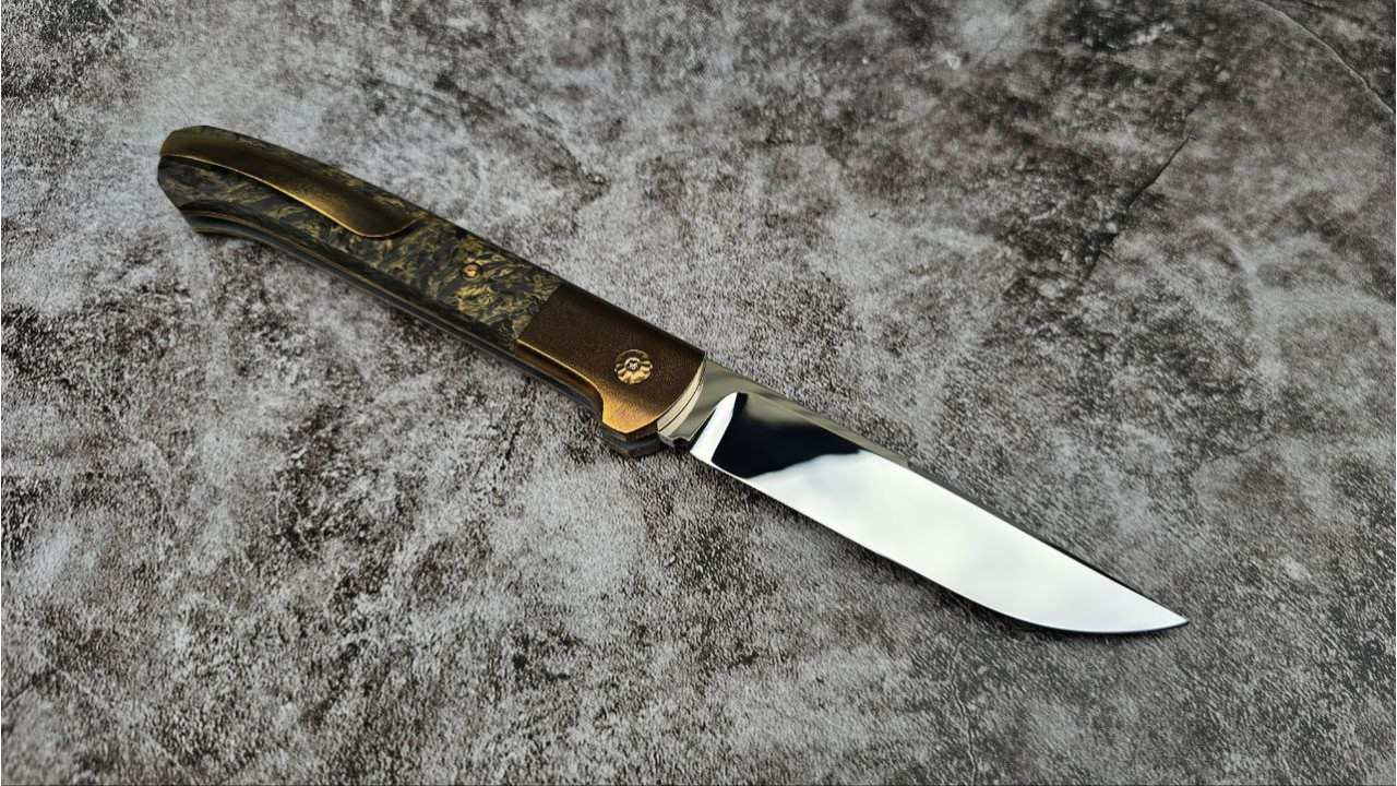 Назва ножа: ЗОЛОТИЙ БАЛЬЗАМ авторський складаний ніж ручної роботи майстерні GRYFON, Сталь CPM® S125V™ 64 HRC, купити замовити в Україні