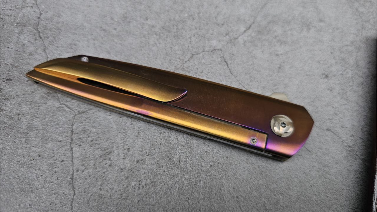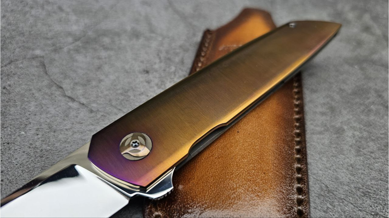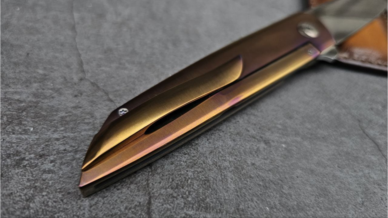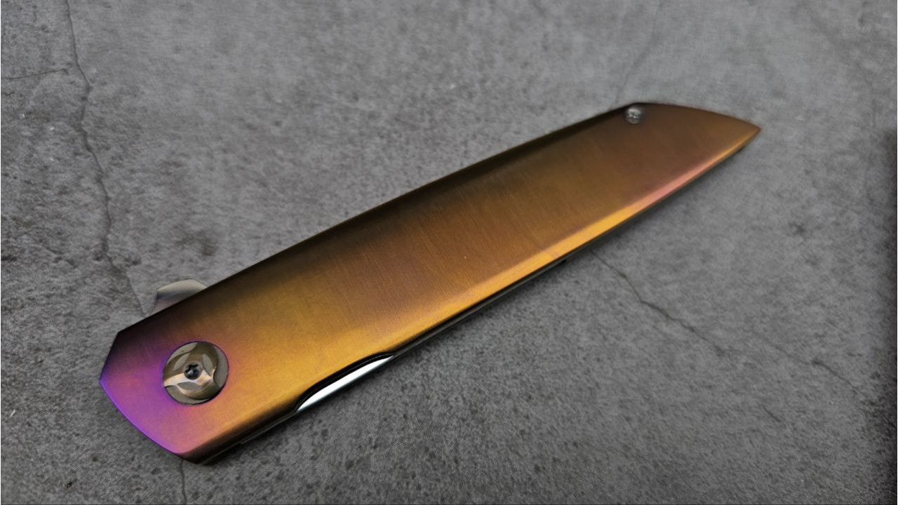 Матеріал руків'я: Машинний сатин майже до полірованого, оксидованого. Титан VT6. Сухар із загартованої n690. Лайнер суб фрейма 2,5 мм